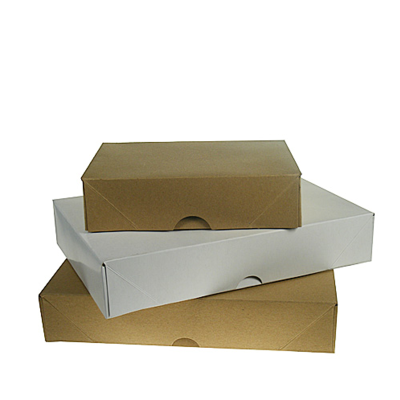 Boxes arrive flat for optimum storage, with simple assembly and no tape needed. Manufactured in a choice of high quality Kraft or white cardboard.